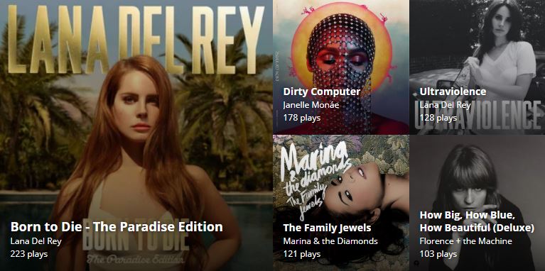 This is the third in a set of three end-of-year 2018 music stats posts. To see my top songs go here and to see my top artists go here. I keep track of every track and podcast episode I listen to on Itunes, my Ipods, Spotify, YouTube, etc. by way of Last.fm scrobbling.