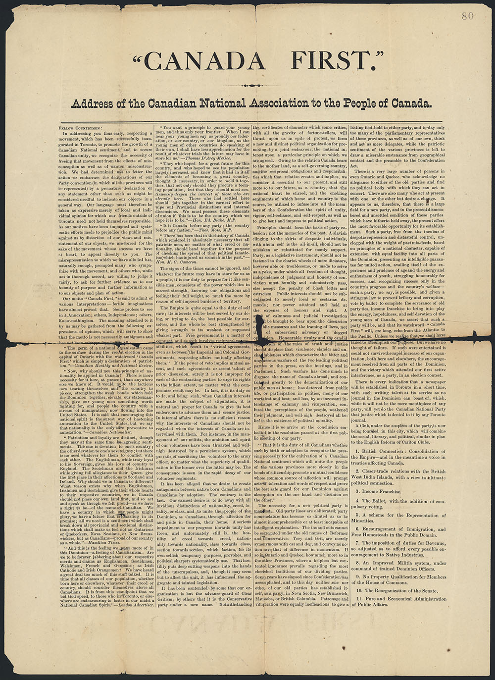 Feature Photo: Canada First Manifesto, Library and Archives Canada, e011163986