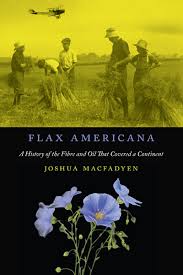 The nearly iridescent blue of the flax flower jumps off the cover of Joshua Macfadyen’s Flax Americana: A History of the Fibre and Oil That Covered a Continent immediately challenging the reader’s perception of this under-appreciated fibre crop. At the same time as one’s eye is drawn to the beauty of the flax flower, one is also pulled into the scene above that juxtaposes the steady stream of labour that flax required with the technological advances of modernity that would change the crop’s use and demand through time. The unexpected vibrancy of the cover serves as an effective representation of flax’s [somewhat unexpected] connection to early household paint. Flax Americana is a book that seeks not to simplify the history of flax, but rather to unveil the complexity of this singular commodity and to trace its colourful trajectory from rural to industrial crop.
