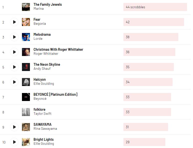 This is the third in a set of three end-of-year 2020 music stats posts. I already published my top songs and my top artists. I keep track of every track and podcast episode I listen to on all digital platforms, including Itunes, Spotify, and YouTube by way of Last.fm scrobbling. This is a list of the artists and podcasts I listened to the most.