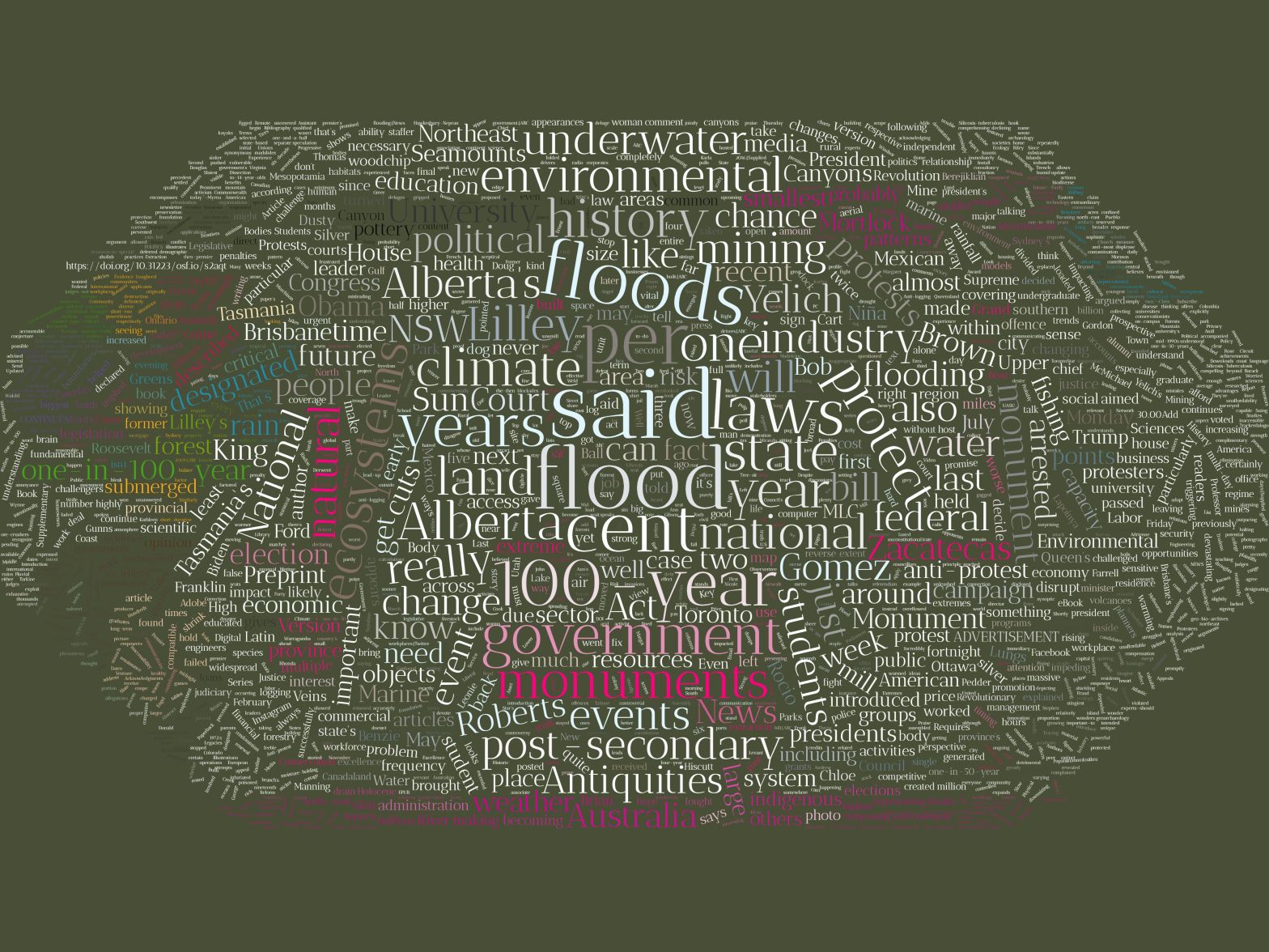 This is the 159th post in my series that explores the most-used words in the top stories shared among Environmental Historians and Environmental Humanities scholars on Twitter each week. Here are the top articles among environmental historians and humanities scholars this past week (March 9, 2020 – March 15, 2020): Alberta's 'optimization' of its parks …